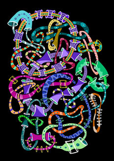 My drawings reflect the intertwined paths of life—sometimes chaotic, but if you choose a path and follow it, you’ll see it unfolds with clarity, leading you forward. Just like on the climbing wall, where scattered holds may seem overwhelming, until you trust your own route and let it take you upward.